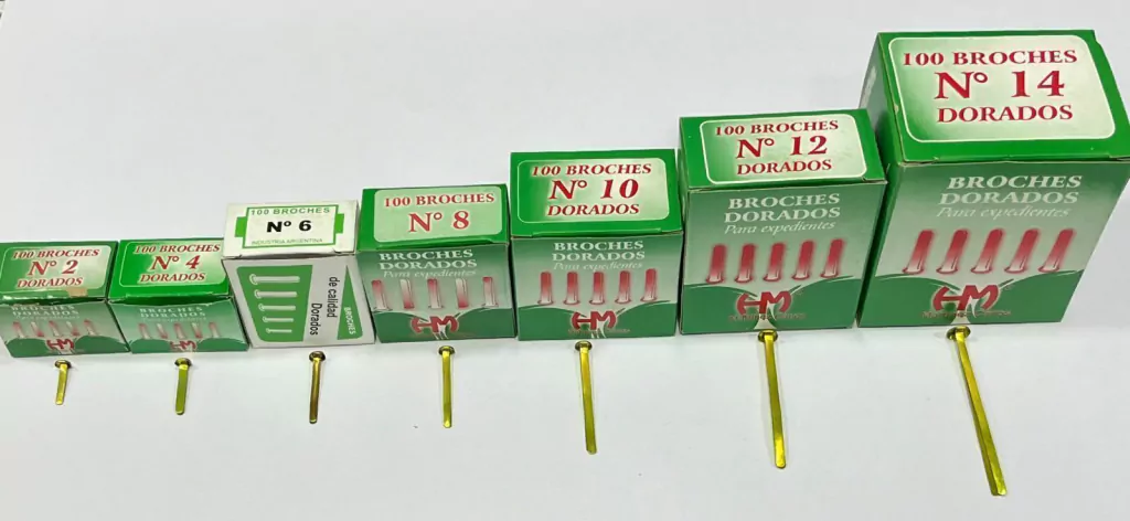 Broches de material metálico el cual lo hace resistente y duradero, por lo que pueden soportar un uso continuo sin deformarse o dañarse fácilmente. Los mismos son indispensables a la hora de manejar gran cantidad de hojas, siendo una perfecta ayuda en la oficina o escritorio.